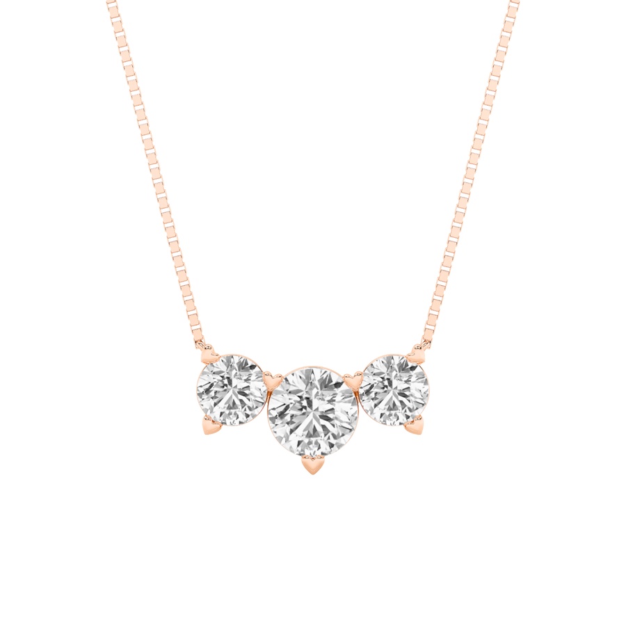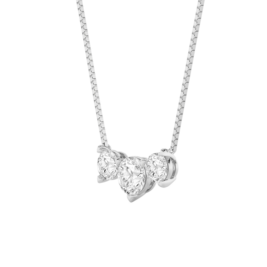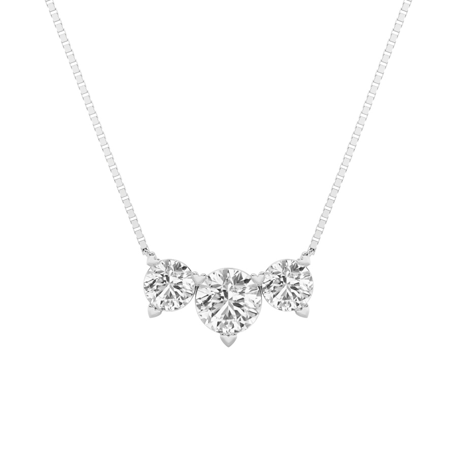 2Cttw Round Shaped Lab Grown Diamond (F/VS) Three Stone Necklace in 14K Gold