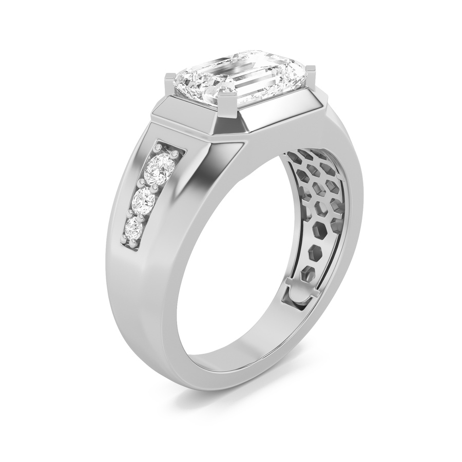 3.5Cttw Emerald Shaped Lab Grown Diamond (F/VS) Mens Ring in 14K Gold