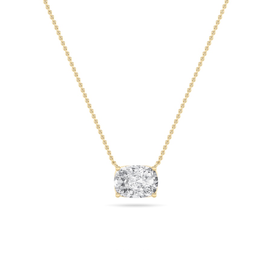 3Cttw Elongated Cushion Shaped Lab Grown Diamond (F/VS) East West Solitaire Necklace in 14K Gold