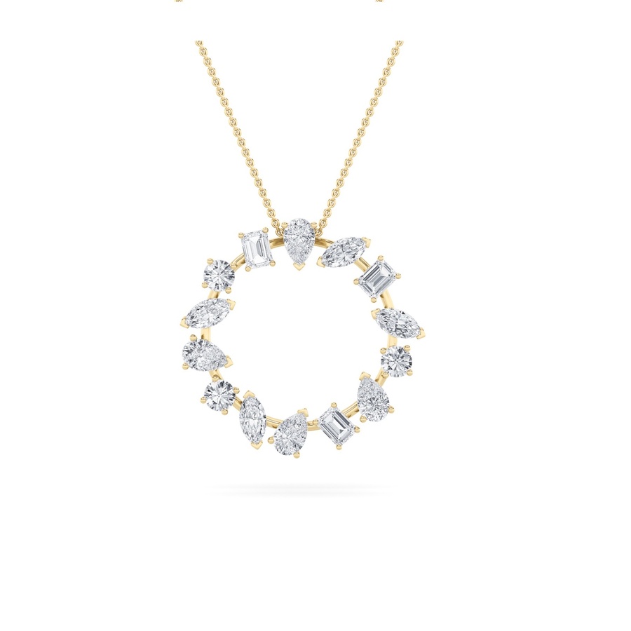 3Cttw Emerald Shaped Lab Grown Diamond (F/VS) Fancy Circle Pendant in 14K Gold