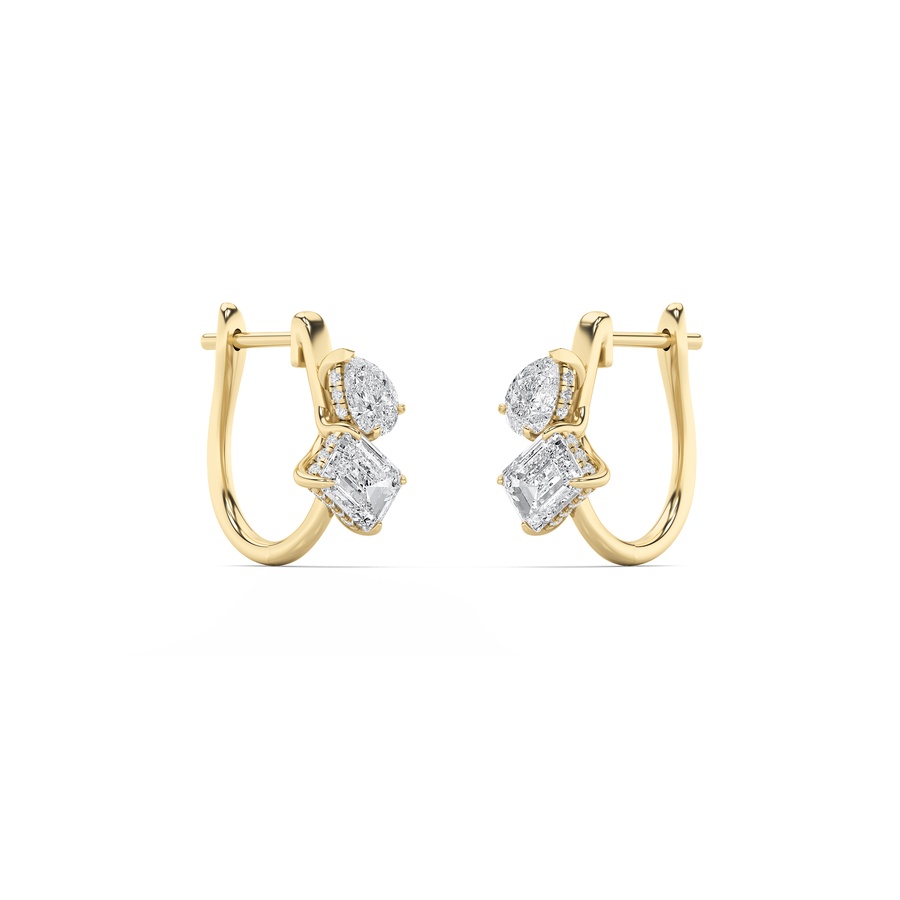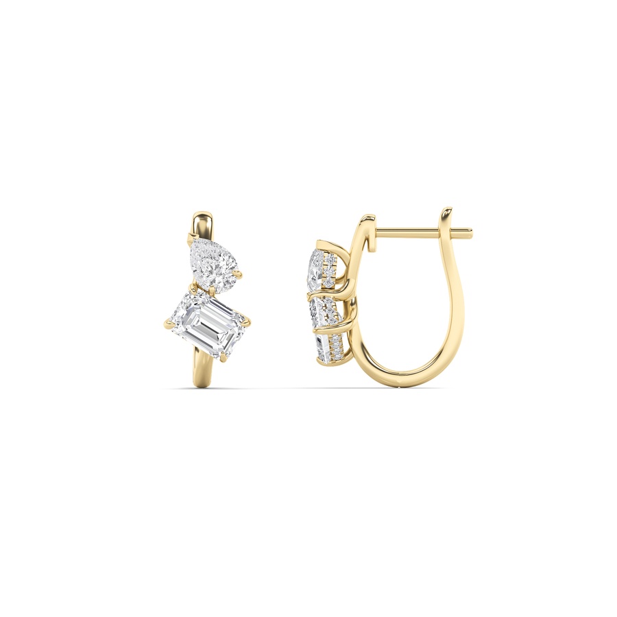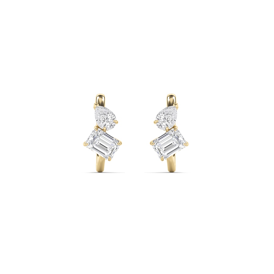 3Cttw Emerald Shaped Lab Grown Diamond (F/VS) Toi et Moi Fashion Earrings in 14K Gold