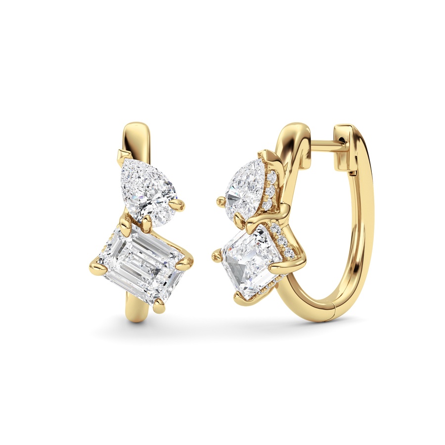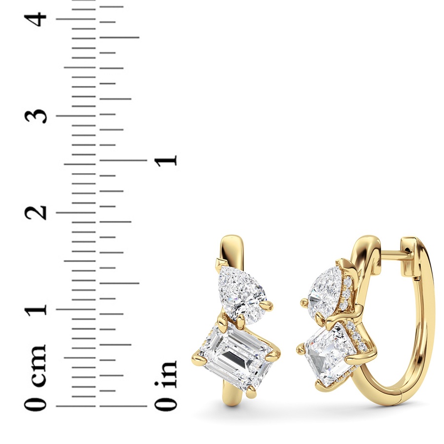 3Cttw Emerald Shaped Lab Grown Diamond (F/VS) Toi et Moi Huggie Earrings in 14K Gold