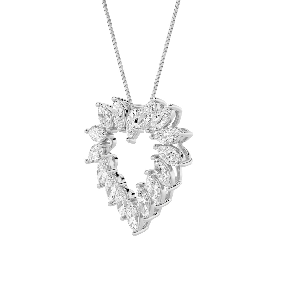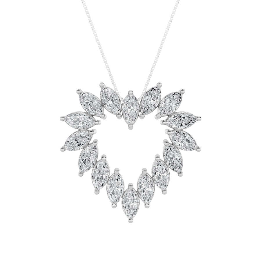 3Cttw Marquise Shaped Lab Grown Diamond (F/VS) Heart Shaped Pendant in 14K Gold