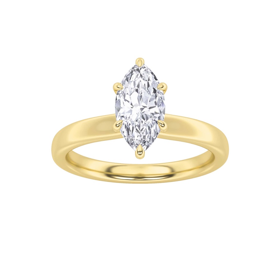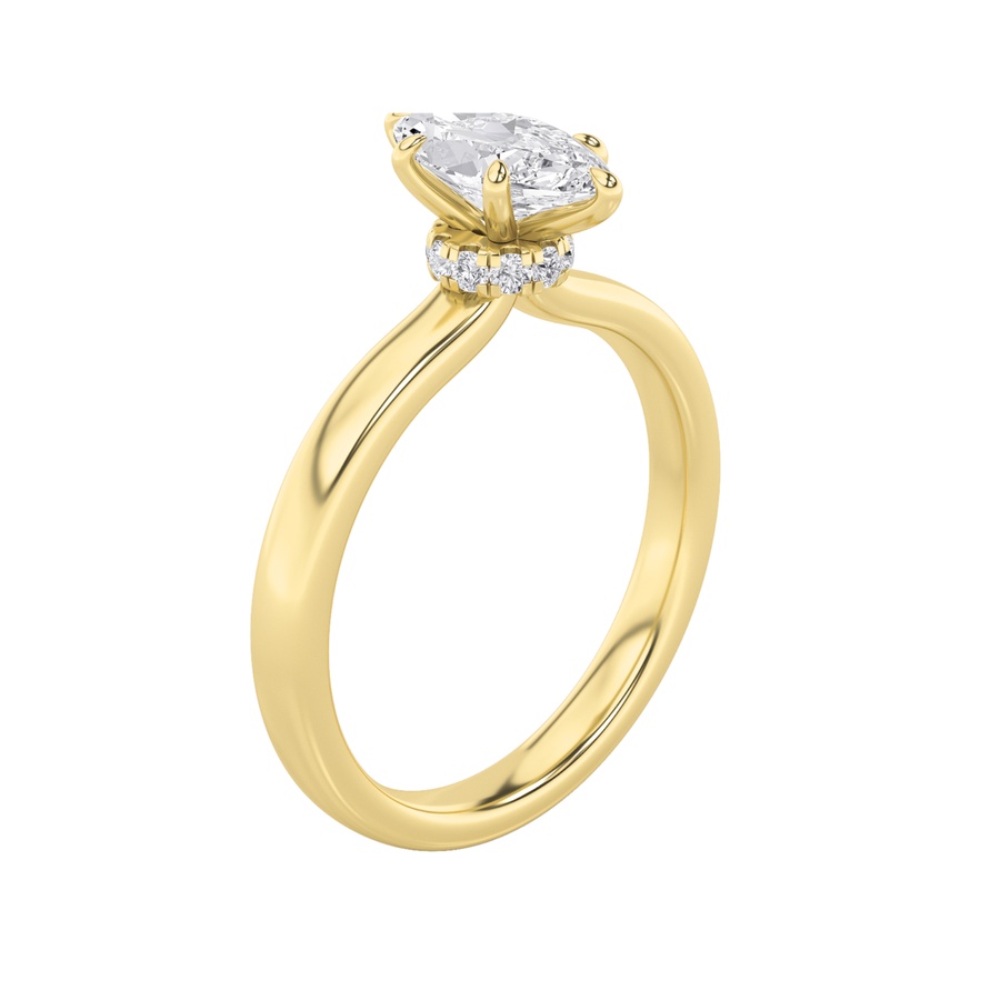 3Cttw Marquise Shaped Lab Grown Diamond (F/VS) Hidden Halo Plain Shank Engagement Ring in 14K Gold
