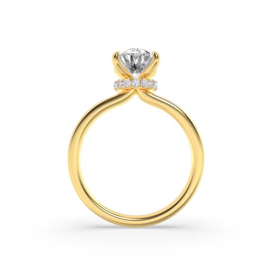 3Cttw Oval Shaped Lab Grown Diamond (F/VS) Hidden Halo Plain Shank Engagement Ring in 14K Gold