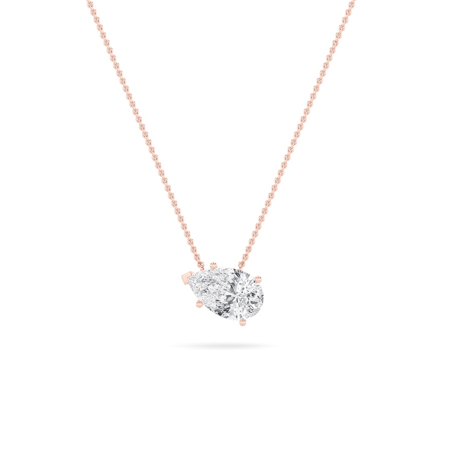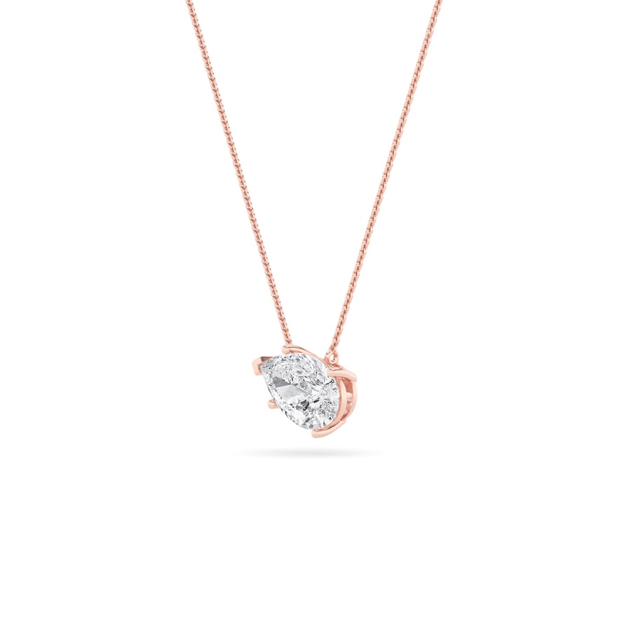 3Cttw Pear Shaped Lab Grown Diamond (F/VS) East West Solitaire Necklace in 14K Gold