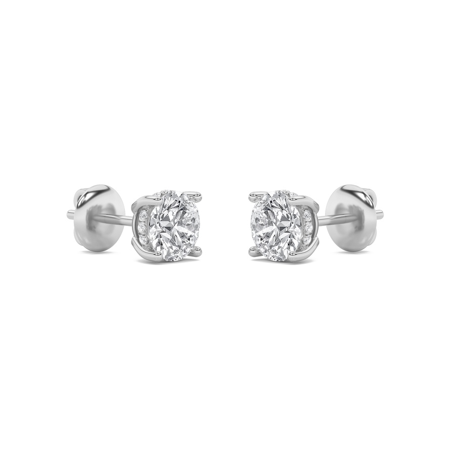 3Cttw Round Shaped Lab Grown Diamond (F/VS) Hidden Halo Stud Earrings in 14K Gold
