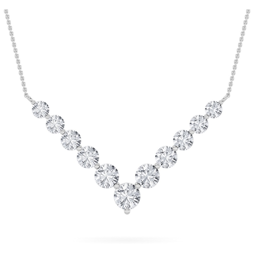 5Cttw Round Shaped Lab Grown Diamond (F/VS) Graduating V Necklace in 14K Gold